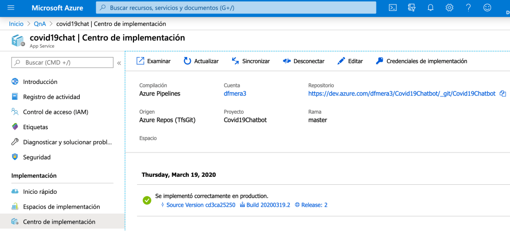 En este punto nuestro chatbot sobre el Coronavirus ya está creado y listo para usarse un cualquier canal. Si queremos personalizarlo o agregarle más funcionalidad podemos descargar el código y modificarlo usando el Bot Framework de Microsoft
