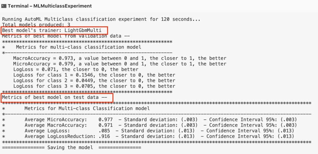 RunDetail<MulticlassClassificationMetrics> bestRun = experimentResult.BestRun;