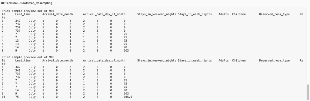 En el primer ejemplo crearemos dos remuestreos (bags), cada uno con una semilla diferente (seed), y veremos los resultados en consola.